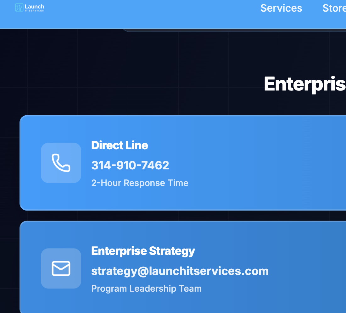 Launch IT Services. The website boost services that bring companies into the age of AI. The site includes ready-to-integrate plans that are generalized to nonsense with vague “Success stories”. It Definitely leaves you wanting more *Eye-roll*.