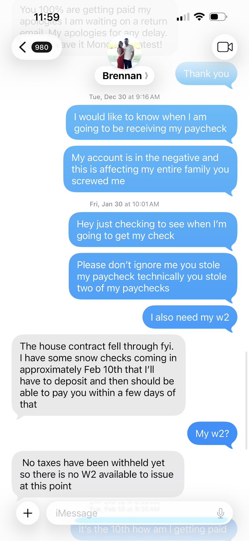 After a long drawn out bitchfest where he complained about his nagging wife and his potential pending divorce, he said he would pay me when his house closed and his snow checks came in. I Just had to wait until February 10th…