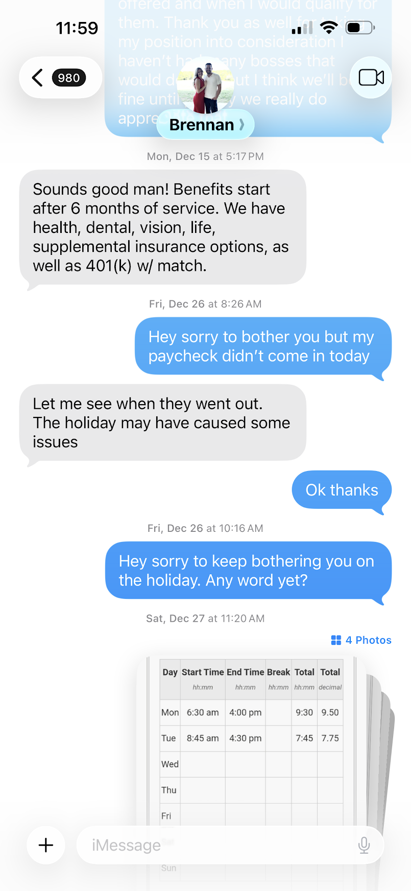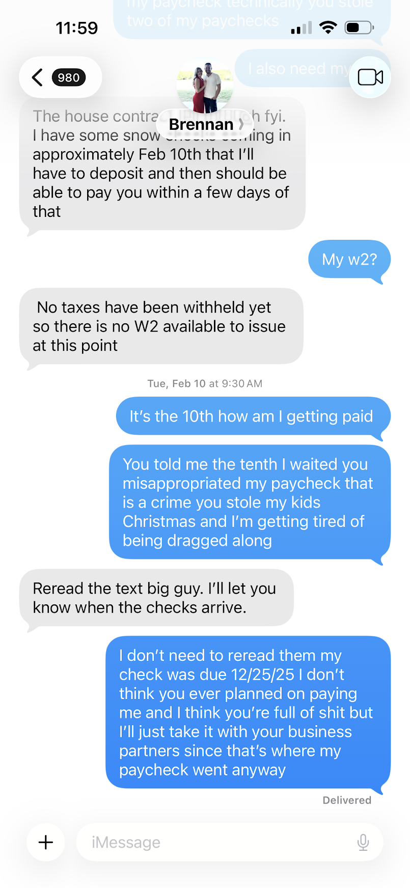 He played the victim card HARD and then said I didn’t have the right to know when I would be paid or what happened to my payroll.