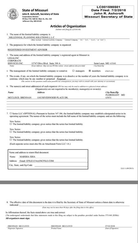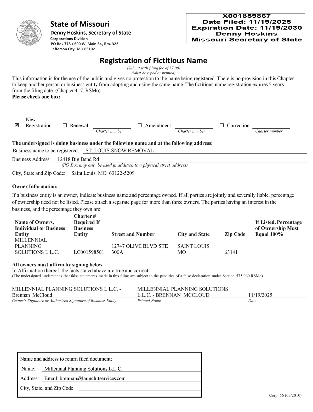 Because he invested it into a new business, St. Louis Snow removal, a Millennial Planning Solutions, LLC company. Fun Fact… Millennial Planning Solutions, LLC is owned by none other than Brennan McCloud!